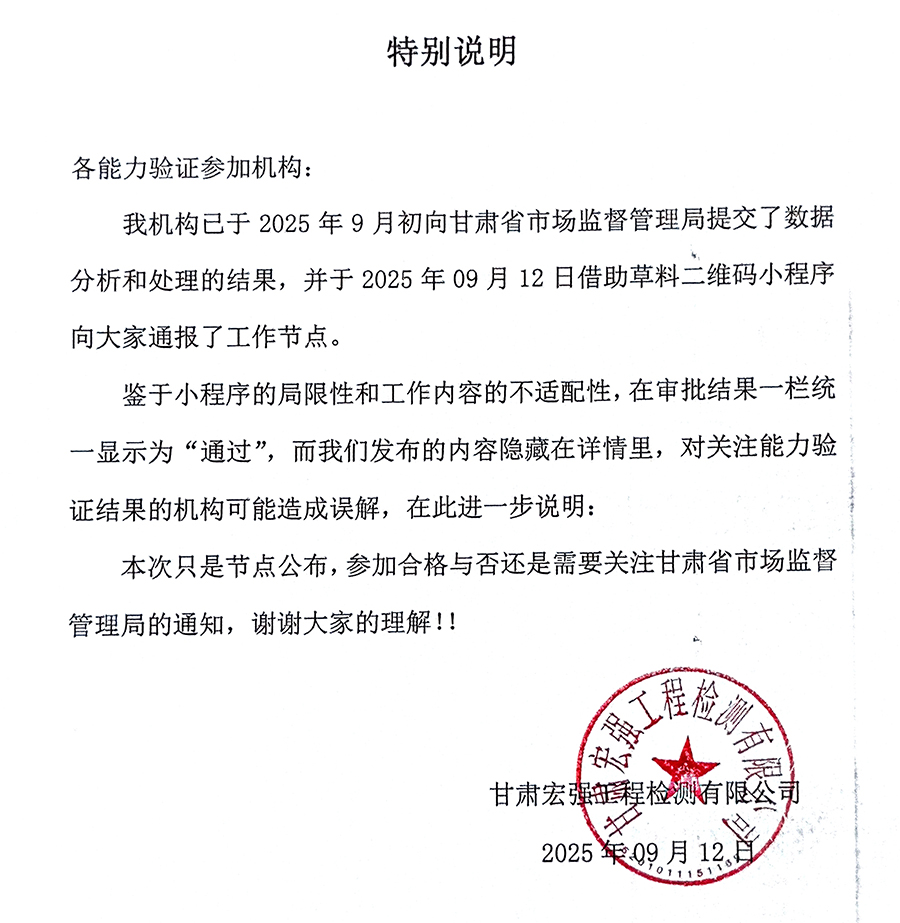 本次能力驗證工作所有通知、要求、作業指導書等將按照以下時間節點發布在本網站(甘肅宏強工程檢測有限公司:http://m.21our.com.cn)。