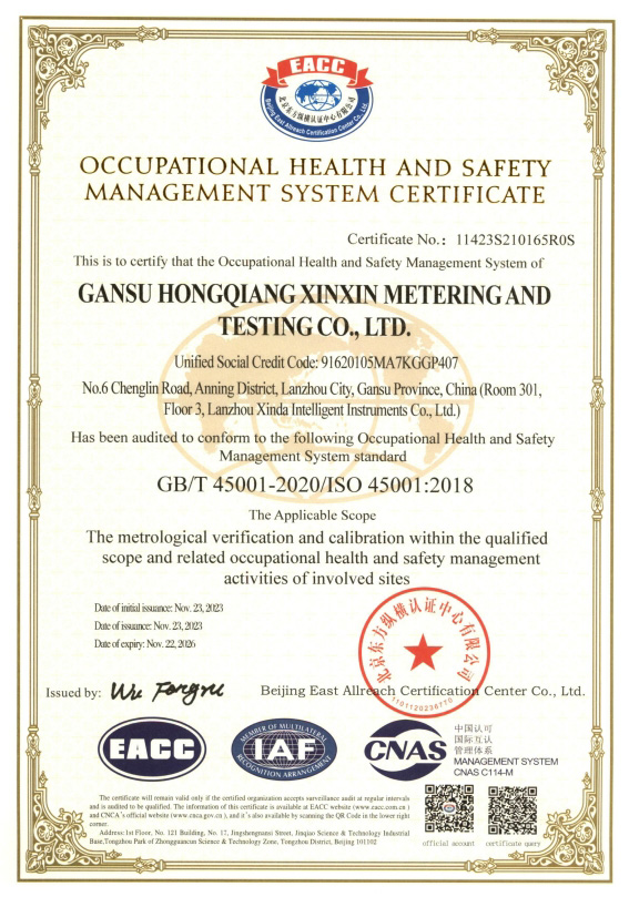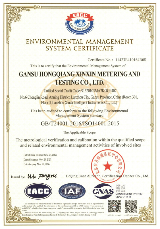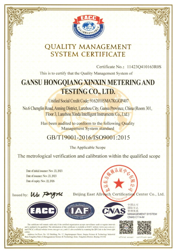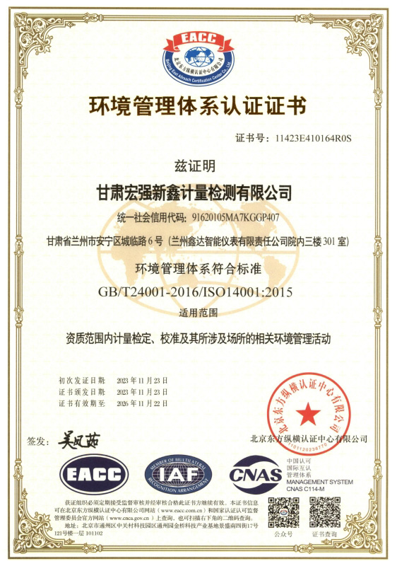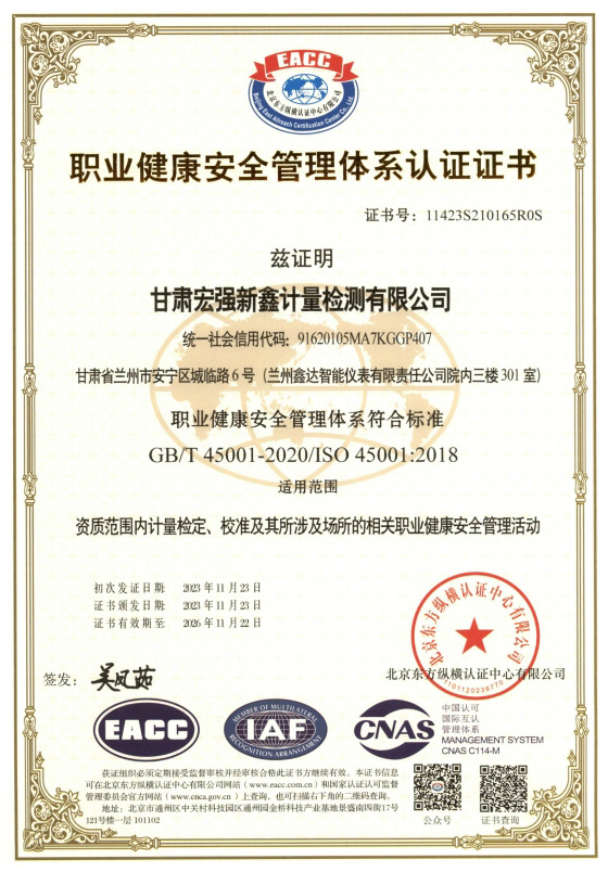 祝賀甘肅宏強新鑫計量檢測有限公司通過三體系認證