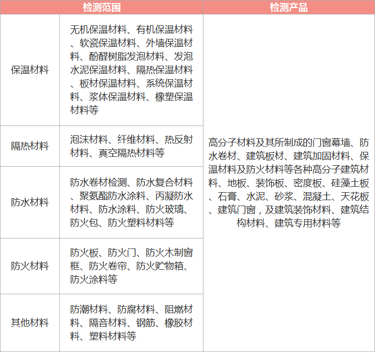 導(dǎo)熱系數(shù)、傳熱系數(shù)、熱阻、透濕性能、密度、吸水率、含水率、尺寸穩(wěn)定性、彎曲性能、壓縮性能、拉伸性能、壓縮..變形、撕裂強度、燃燒性能、吸聲性能、隔聲性能、相變溫度、抗風(fēng)壓性能、可靠性試驗、耐候性檢測、老化檢測、環(huán)保檢測、含量測定、有毒有害檢測等。